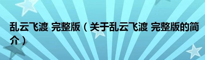 本文關于亂云飛渡 完整版的簡介就講解完畢,希望對大家有所幫助。