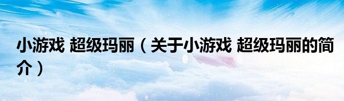 大家好,小游戲 超級瑪麗,關于小游戲 超級瑪麗的簡介很多人還不知道,現在讓我們一起來看看吧!