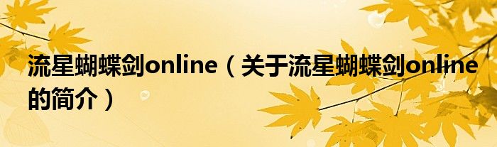 大家好,流星蝴蝶劍online,關于流星蝴蝶劍online的簡介很多人還不知道,現在讓我們一起來看看吧!