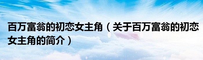 本文關于百萬富翁的初戀女主角的簡介就講解完畢,希望對大家有所幫助。