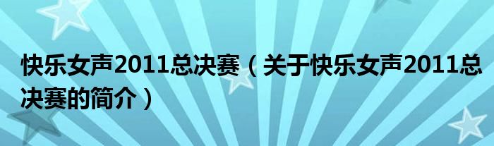 大家好,快樂女聲2011總決賽,關于快樂女聲2011總決賽的簡介很多人還不知道,現(xiàn)在讓我們一起來看看吧!
