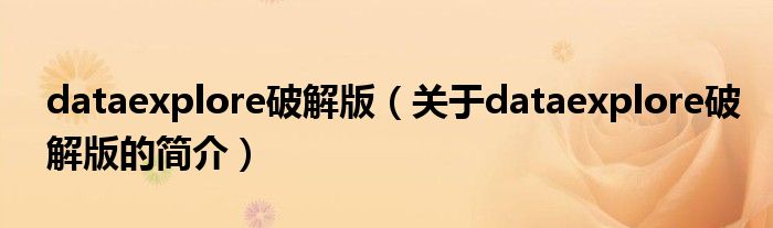 大家好,dataexplore破解版,關于dataexplore破解版的簡介很多人還不知道,現在讓我們一起來看看吧!