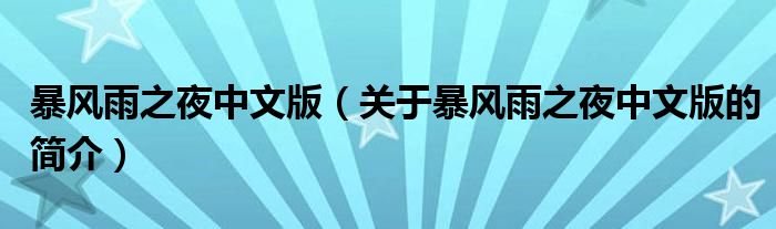 大家好,暴風(fēng)雨之夜中文版,關(guān)于暴風(fēng)雨之夜中文版的簡(jiǎn)介很多人還不知道,現(xiàn)在讓我們一起來看看吧!