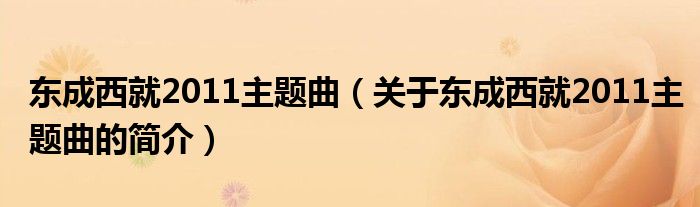 本文關于東成西就2011主題曲的簡介就講解完畢,希望對大家有所幫助。