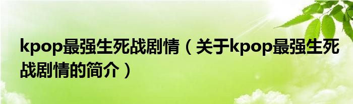 本文關于kpop最強生死戰劇情的簡介就講解完畢,希望對大家有所幫助。