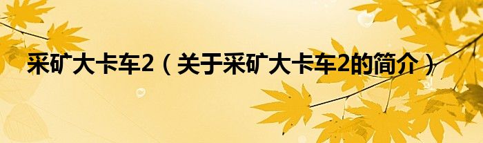 本文關(guān)于采礦大卡車2的簡介就講解完畢,希望對大家有所幫助。