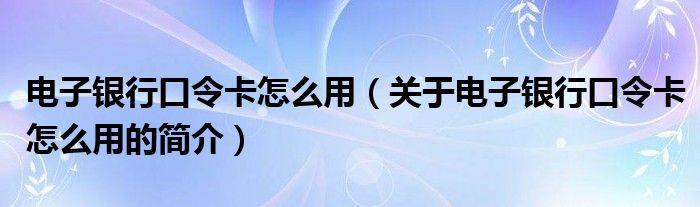本文關于電子銀行口令卡怎么用的簡介就講解完畢,希望對大家有所幫助。