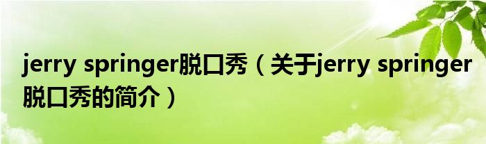 本文關于jerry springer脫口秀的簡介就講解完畢,希望對大家有所幫助。