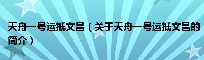本文關于天舟一號運抵文昌的簡介就講解完畢,希望對大家有所幫助。