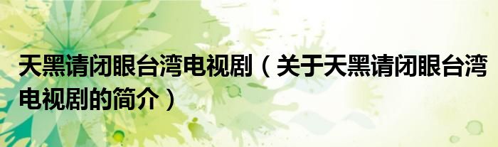 本文關于天黑請閉眼臺灣電視劇的簡介就講解完畢,希望對大家有所幫助。