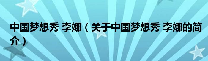 本文關于中國夢想秀 李娜的簡介就講解完畢,希望對大家有所幫助。