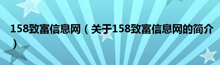 大家好,158致富信息網,關于158致富信息網的簡介很多人還不知道,現在讓我們一起來看看吧!