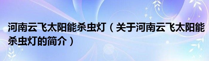 本文關(guān)于河南云飛太陽能殺蟲燈的簡介就講解完畢,希望對大家有所幫助。