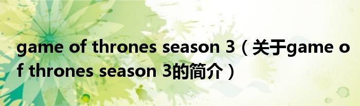 大家好,game of thrones season 3,關(guān)于game of thrones season 3的簡介很多人還不知道,現(xiàn)在讓我們一起來看看吧!