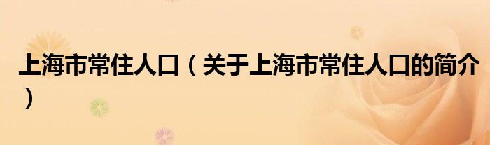本文關于上海市常住人口的簡介就講解完畢,希望對大家有所幫助。