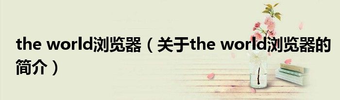 本文關于the world瀏覽器的簡介就講解完畢,希望對大家有所幫助。