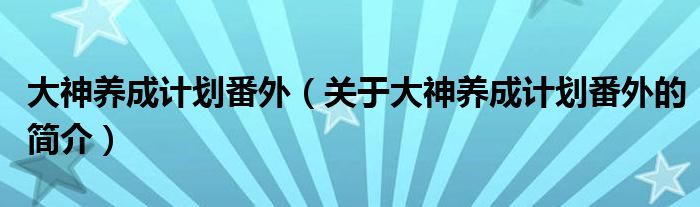 本文關于大神養成計劃番外的簡介就講解完畢,希望對大家有所幫助。