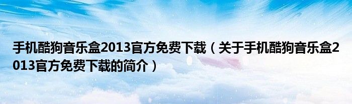 本文關(guān)于手機(jī)酷狗音樂盒2013官方免費(fèi)下載的簡介就講解完畢,希望對大家有所幫助。