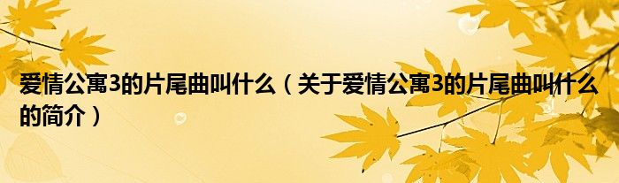 本文關于愛情公寓3的片尾曲叫什么的簡介就講解完畢,希望對大家有所幫助。