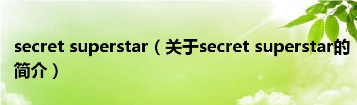 大家好,secret superstar,關于secret superstar的簡介很多人還不知道,現在讓我們一起來看看吧!