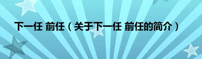大家好,下一任 前任,關于下一任 前任的簡介很多人還不知道,現在讓我們一起來看看吧!