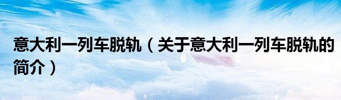 本文關于意大利一列車脫軌的簡介就講解完畢,希望對大家有所幫助。