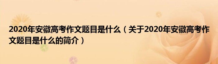 大家好,2020年安徽高考作文題目是什么,關于2020年安徽高考作文題目是什么的簡介很多人還不知道,現在讓我們一起來看看吧!