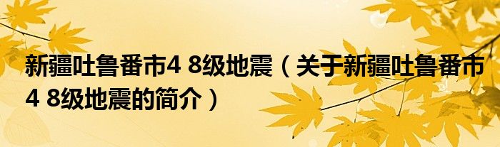 本文關(guān)于新疆吐魯番市4 8級地震的簡介就講解完畢,希望對大家有所幫助。