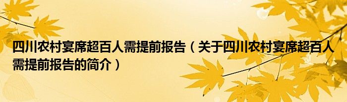 本文關于四川農村宴席超百人需提前報告的簡介就講解完畢,希望對大家有所幫助。