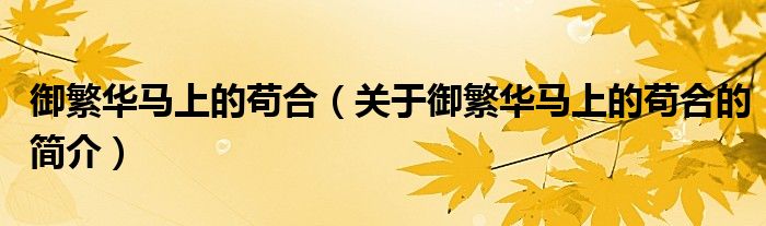 本文關(guān)于御繁華馬上的茍合的簡(jiǎn)介就講解完畢,希望對(duì)大家有所幫助。