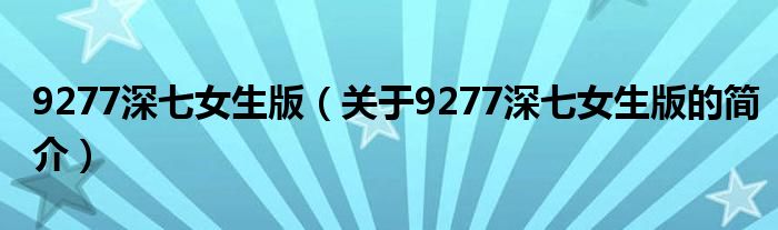 大家好,9277深七女生版,關于9277深七女生版的簡介很多人還不知道,現在讓我們一起來看看吧!