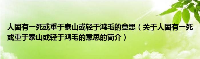 大家好,人固有一死或重于泰山或輕于鴻毛的意思,關于人固有一死或重于泰山或輕于鴻毛的意思的簡介很多人還不知道,現在讓我們一起來看看吧!