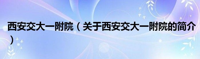 大家好,西安交大一附院,關于西安交大一附院的簡介很多人還不知道,現在讓我們一起來看看吧!