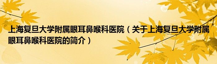 本文關(guān)于上海復(fù)旦大學(xué)附屬眼耳鼻喉科醫(yī)院的簡(jiǎn)介就講解完畢,希望對(duì)大家有所幫助。