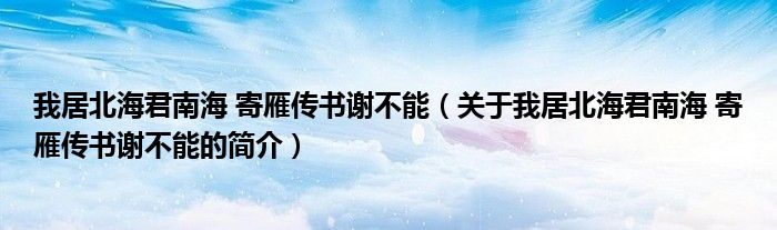 本文關于我居北海君南海 寄雁傳書謝不能的簡介就講解完畢,希望對大家有所幫助。