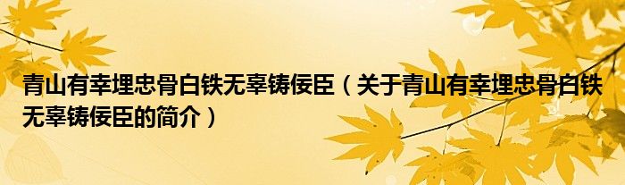 大家好,青山有幸埋忠骨白鐵無辜鑄佞臣,關于青山有幸埋忠骨白鐵無辜鑄佞臣的簡介很多人還不知道,現在讓我們一起來看看吧!