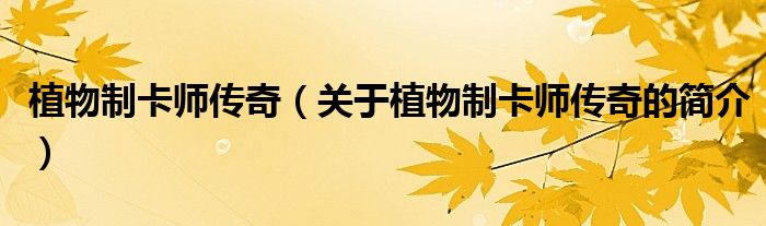 大家好,植物制卡師傳奇,關(guān)于植物制卡師傳奇的簡介很多人還不知道,現(xiàn)在讓我們一起來看看吧!