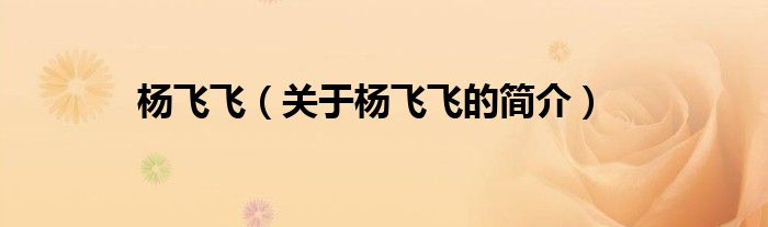 大家好,楊飛飛,關于楊飛飛的簡介很多人還不知道,現在讓我們一起來看看吧!