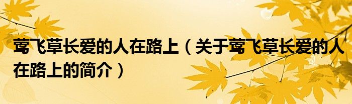 本文關于鶯飛草長愛的人在路上的簡介就講解完畢,希望對大家有所幫助。