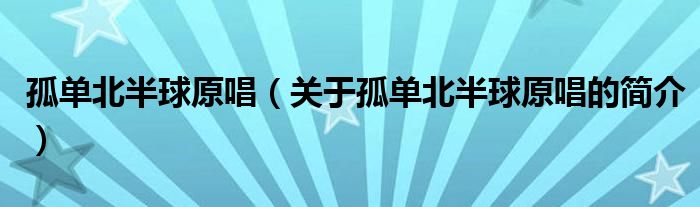 大家好,孤單北半球原唱,關于孤單北半球原唱的簡介很多人還不知道,現在讓我們一起來看看吧!