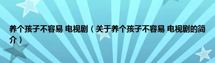 大家好,養個孩子不容易 電視劇,關于養個孩子不容易 電視劇的簡介很多人還不知道,現在讓我們一起來看看吧!