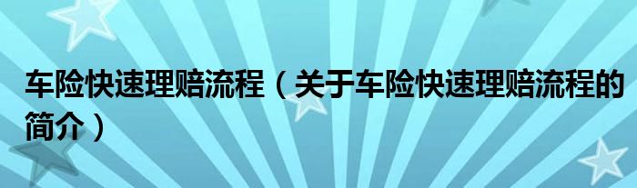 本文關于車險快速理賠流程的簡介就講解完畢,希望對大家有所幫助。
