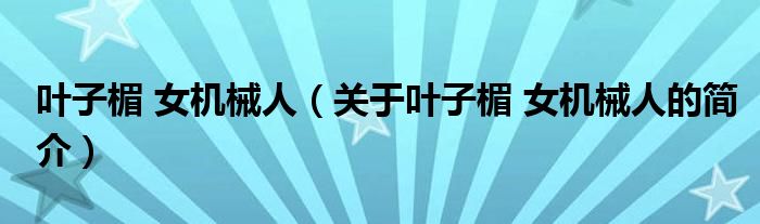 本文關于葉子楣 女機械人的簡介就講解完畢,希望對大家有所幫助。
