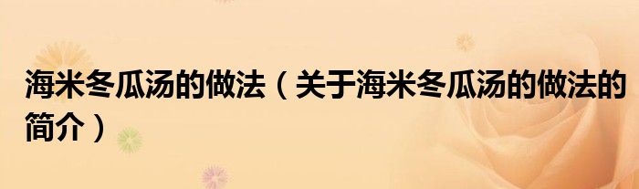 本文關(guān)于海米冬瓜湯的做法的簡介就講解完畢,希望對大家有所幫助。