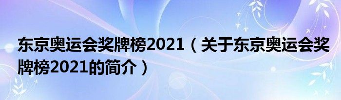 本文關于東京奧運會獎牌榜2021的簡介就講解完畢,希望對大家有所幫助。