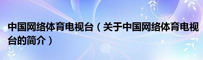 本文關于中國網絡體育電視臺的簡介就講解完畢,希望對大家有所幫助。