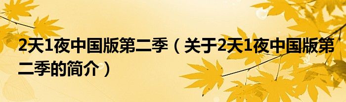 本文關于2天1夜中國版第二季的簡介就講解完畢,希望對大家有所幫助。