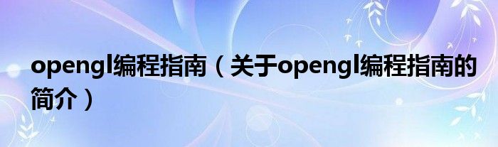 大家好,opengl編程指南,關于opengl編程指南的簡介很多人還不知道,現在讓我們一起來看看吧!