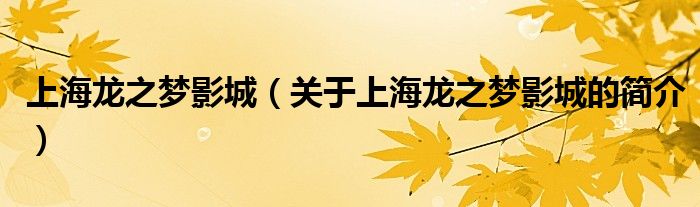 本文關于上海龍之夢影城的簡介就講解完畢,希望對大家有所幫助。