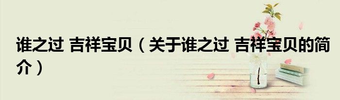 大家好,誰之過 吉祥寶貝,關于誰之過 吉祥寶貝的簡介很多人還不知道,現在讓我們一起來看看吧!